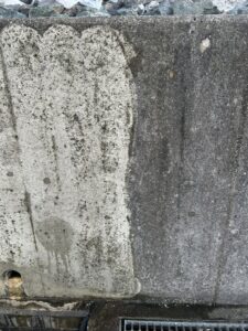 さらに、前面道路には排気ガスの黒ずみや、雨によって流れ込んだ泥汚れが蓄積 し、周囲の景観を損ねていました。